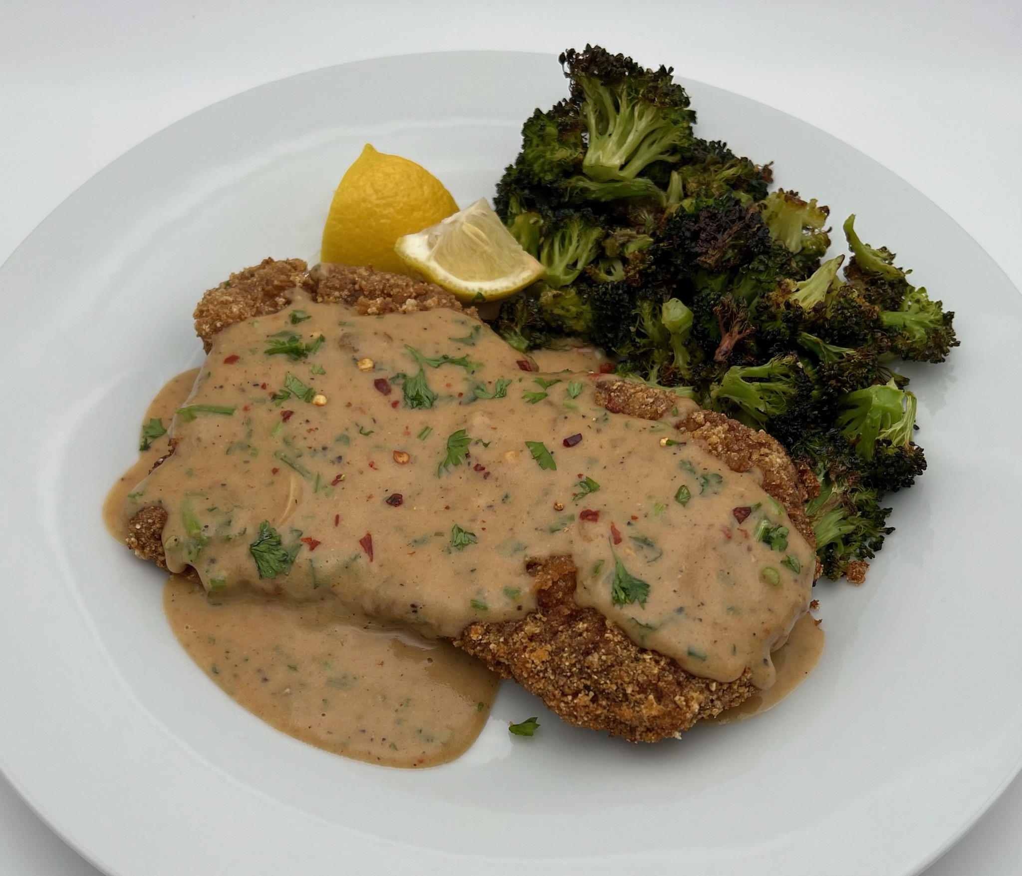 I just started Keto, and one of the things I miss the most when I am on this low-carb diet is BREADING. Last time I was on keto about a year ago, I would mash up pork rinds to bread things. But THIS time, apparently the keto gods were looking down upon me because they started selling it, and it's perfectly panko-ey, unlike the remaining large chunks in my homemade version. Here I take a classic - Chicken Fried Steak - and turn it keto. It hits right when you are craving carbs, only has 3-5 grams per serving, and, if you can even believe it, feels light. Here's to health. Serves 2.